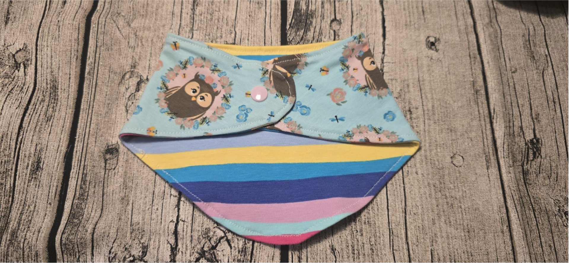 Handmade Halstuch Eulen- Multicolor mit Druckknopf